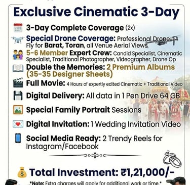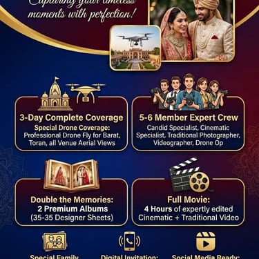 Based in Bishanagarh Jalore, we provide professional photography and cinematography for your most sacred moments.