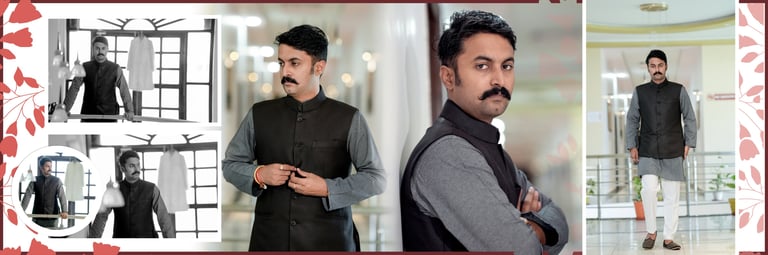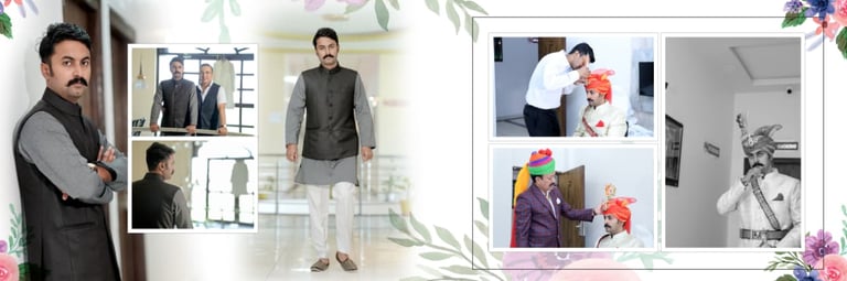 Capture the essence of love and commitment through stunning visuals in the groom's wedding shoot, showcasing key moments like the anticipation before the ceremony, the joy of getting ready with family, and the elegance of the groom in his attire.